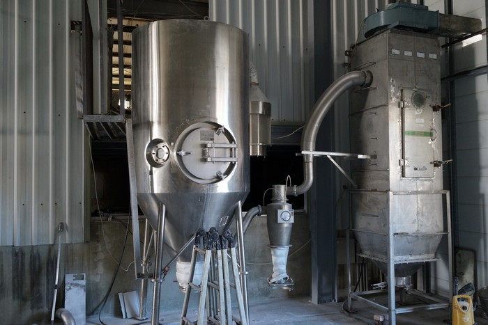 規格:10年機,水相基質(base),有防爆裝置,附備用離心頭(原價破百萬)。Water evaporation capacity, 5-30 kg/h,是噴嘴與離心轉盤兩用型,高330cm直徑135cm,空間佔地約要有140公分x330公分、高至少要有350cm,還有一個粉塵過濾系統約100x100cm高約340cm