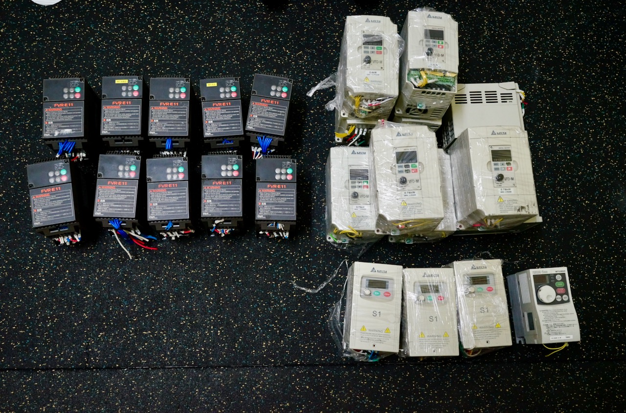 規格:FUJI FVRO. 4E11S-2 x 10 & Delta VFD004M21A 0.4Kw & Delta VFD004M21A 0.75Kw,功能正常,Delta中有7台的按鈕面板有破損