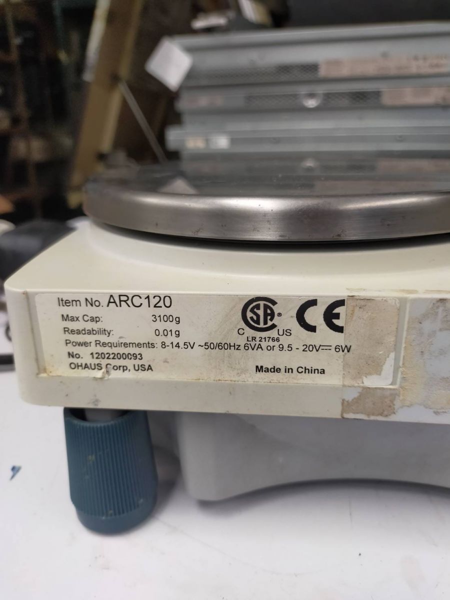 編號:B0045 品名:二位小數電子天平 廠牌:OHAUS Adventurer ARC120,110VAC,Max Cap.: 3100g,Readability: 0.01g 型號:Adventurer ARC120 現況:110VAC,Max Cap.: 3100g,Readability: 0.01g。 地點:桃園市 保固期:可看物件實體或現場試機,不保固,現況點交,不退、換貨。 售價:現金價,新台幣 2,000元(未稅價,可議價,運費另計),歡迎來電。