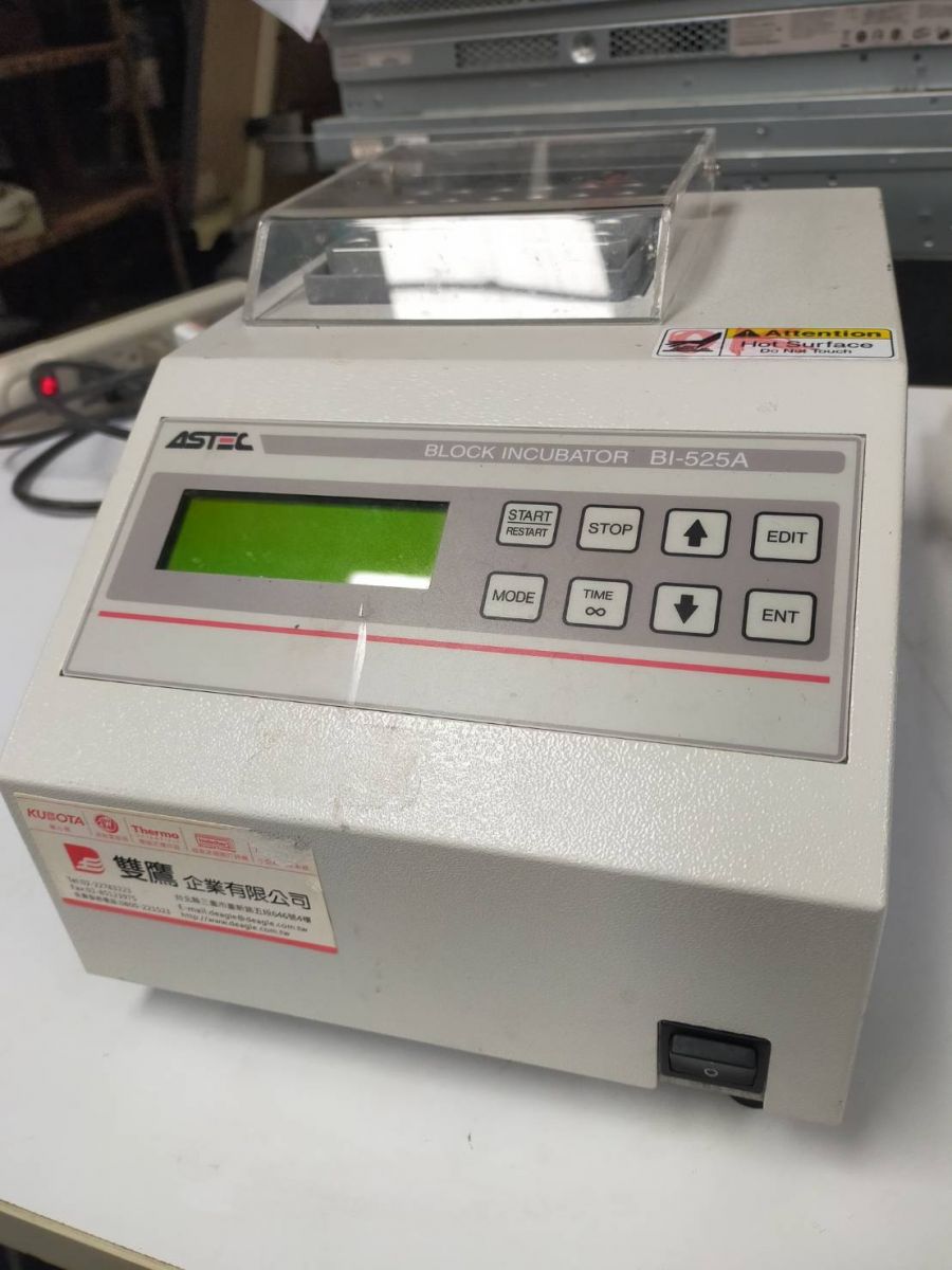 編號:B0052 品名:可程式型高低溫乾浴器(Block Incubator) 廠牌:ASTEC 型號:BI-525A 現況:110VAC,2A,60Hz,具壓克力上蓋,可保持槽內溫度,停電後再來電具有自動記憶及顯示未完成之步驟,具有過溫保護裝置,具3段程式設定,並可設定溫度及時間,0℃~99℃,30孔數Block。 地點:桃園市 保固期:可看物件實體或現場試機,不保固,現況點交,不退、換貨。 售價:現金價,新台幣 20,000元(未稅價,可議價,運費另計),歡迎來電。