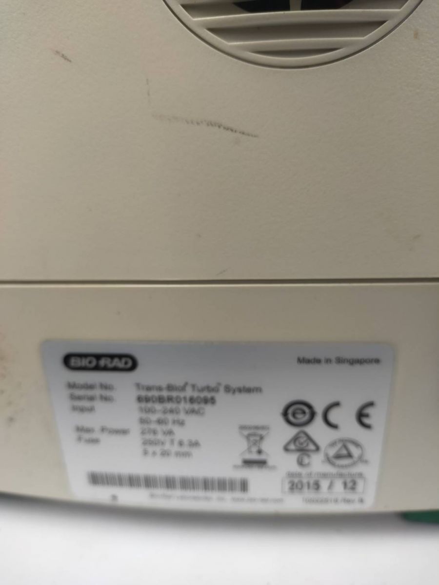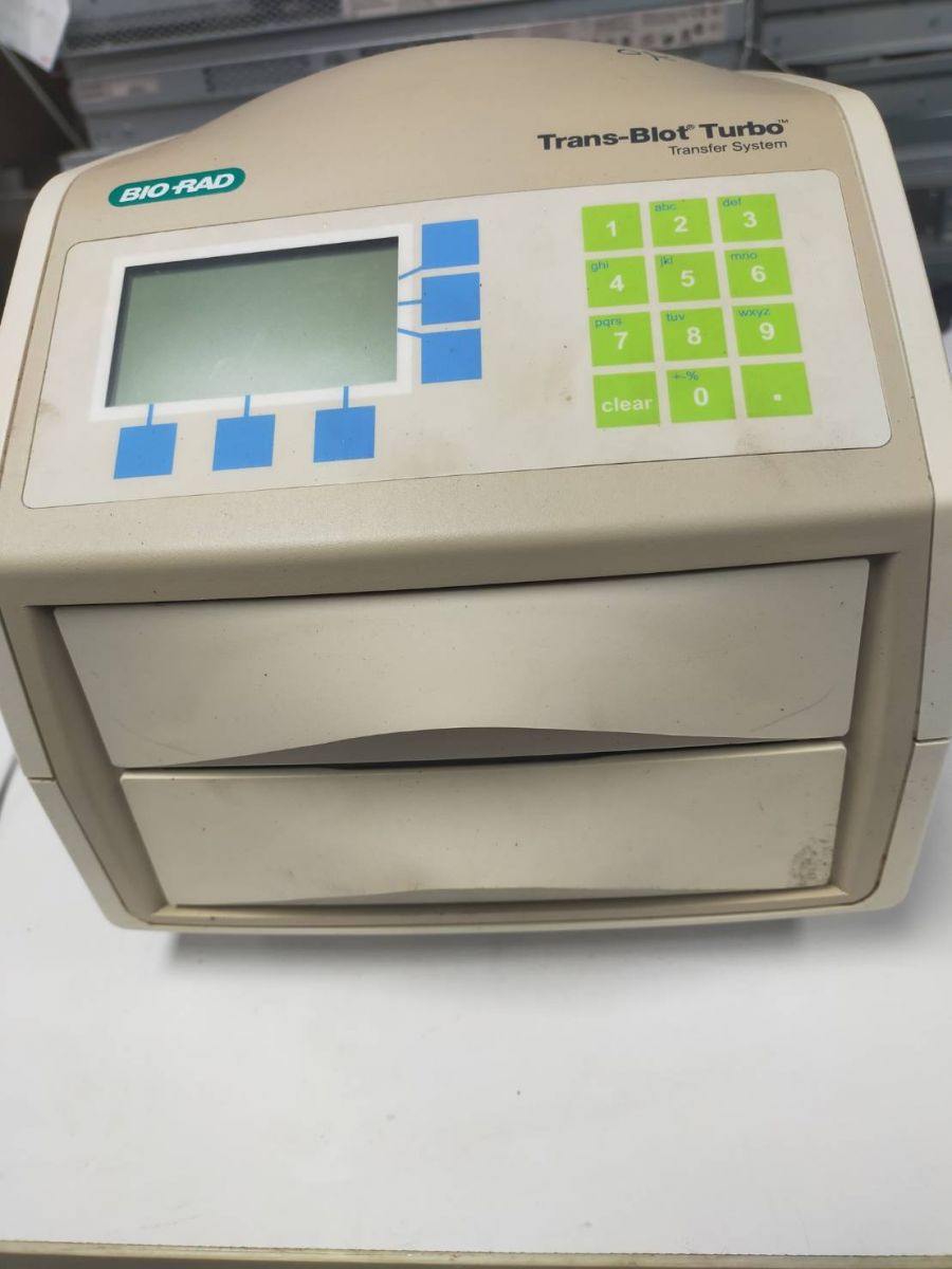 編號:B0057 品名:高速半乾式轉漬器 (高效率快速轉漬系統) 廠牌:BIO-RAD 型號:Trans-Blot Turbo Transfer System 現況:110VAC,可於 7 分鐘內轉漬 1-4 片小型膠片 (10x7.5cm)。 地點:桃園市 保固期:可看物件實體或現場試機,不保固,現況點交,不退、換貨。 售價:現金價,新台幣 20,000元(未稅價,可議價,運費另計),歡迎來電。
